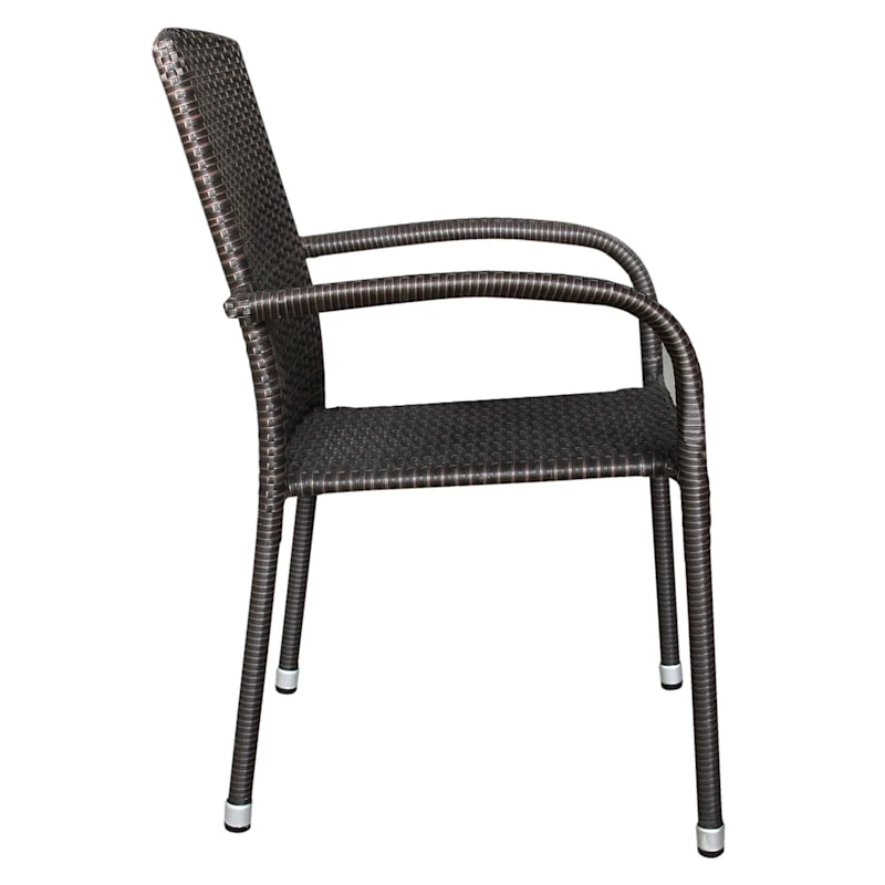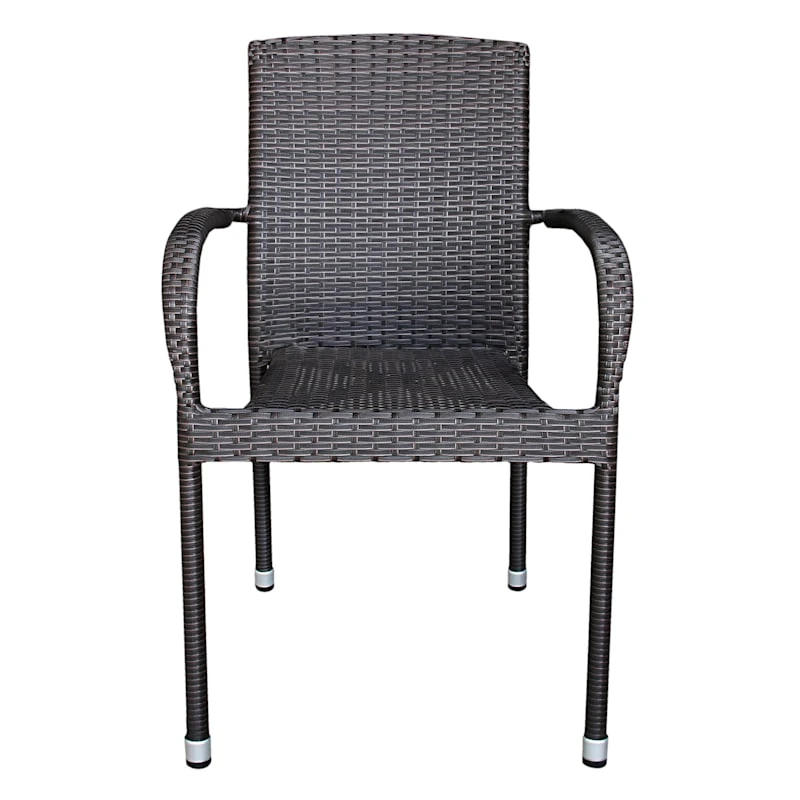 Enjoy the season and get outside with our stackable outdoor brown wicker chair. Buy in multiples and be sure to have enough outdoor seating for family and friends. This outdoor all-weather wicker chair features a simple, streamlined look with a metal frame and a comfortable synthetic wicker that’s breathable. This brown stacking chair will last even longer if protected from the elements. Pair with any patio table or garden stool and enjoy the great outdoors to the fullest.