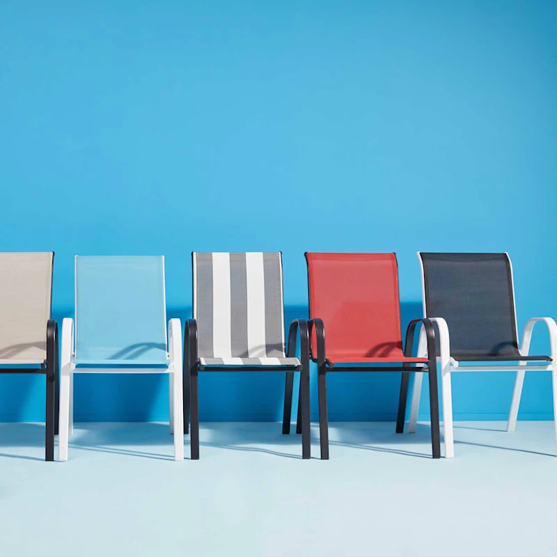 Escape the indoors and get outdoors with our stackable red and black sling patio chair. Buy in multiples and be sure to have enough outdoor seating for family and friends. This outdoor metal dining chair features a simple streamlined look with a black metal frame and a comfortable mesh fabric that’s breathable. These stacking chairs will last even longer if protected from the elements. Pair with any patio table or garden stool and enjoy the great outdoors to the fullest.