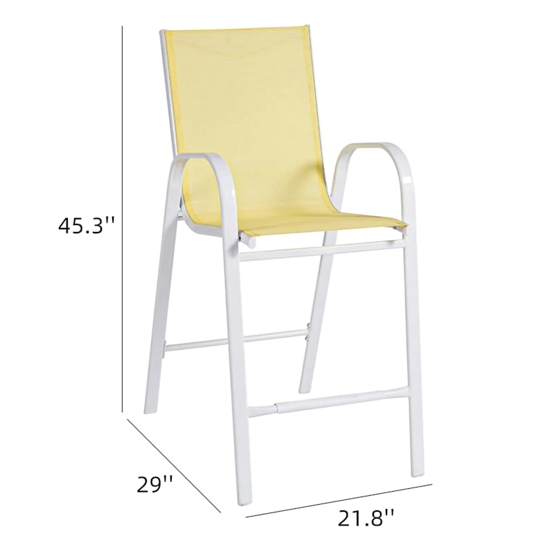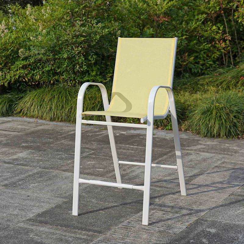 Escape the indoors and get outdoors with our stackable yellow Sling patio barstool. Buy in multiples and be sure to have enough outdoor seating for family and friends. This outdoor metal dining chair features a simple streamlined look with a metal frame and a comfortable mesh fabric that’s breathable. These stacking chairs will last even longer if protected from the elements. Pair with any patio table or garden stool and enjoy the great outdoors to the fullest.