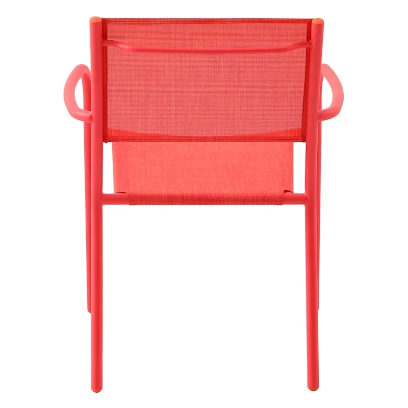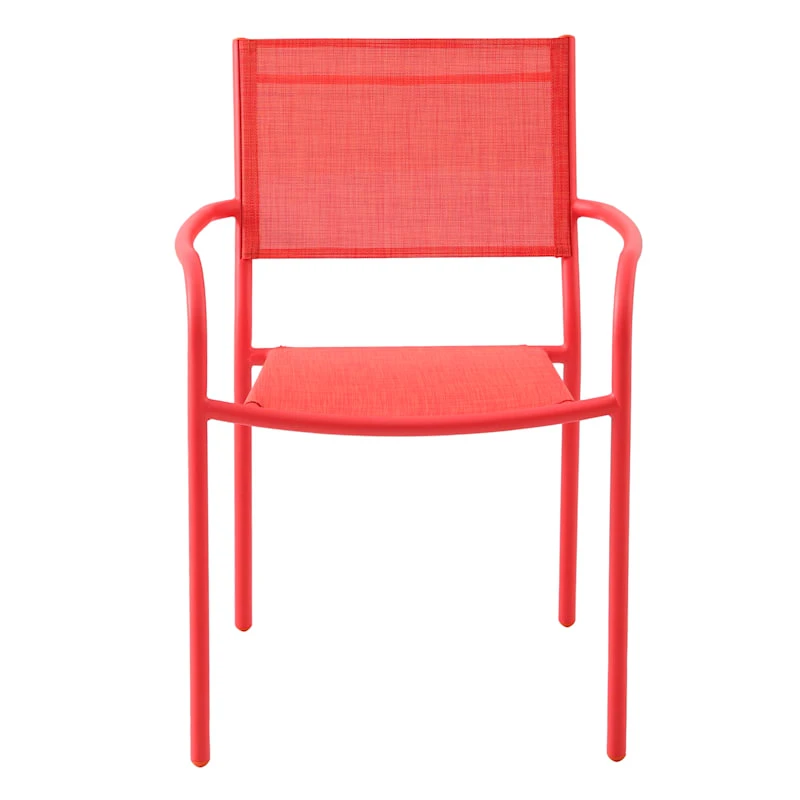 Enjoy the season and get outside with our stackable Sunny Club coral Textilene outdoor stackable chair. Buy in multiples and be sure to have enough outdoor seating for family and friends. This outdoor armchair features a simple, streamlined look with a metal frame and a comfortable mesh fabric that’s breathable. This coral stacking chair will last even longer if protected from the elements. Pair with any patio table or garden stool and enjoy the great outdoors to the fullest with the perfect seat.