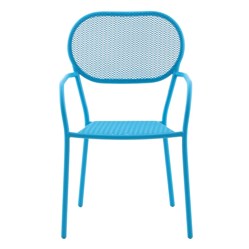 Lean back and chill with good friends and great seating. Made with sturdy blue metal mesh frame, our Sunny Club blue mesh steel outdoor chair features unique open mesh back and seat to bring a sleek touch and delightful convenience to your backyard or patio space. Best of all, this chair is portable and can be moved easily and will also blend seamlessly into your colorful summer landscape.