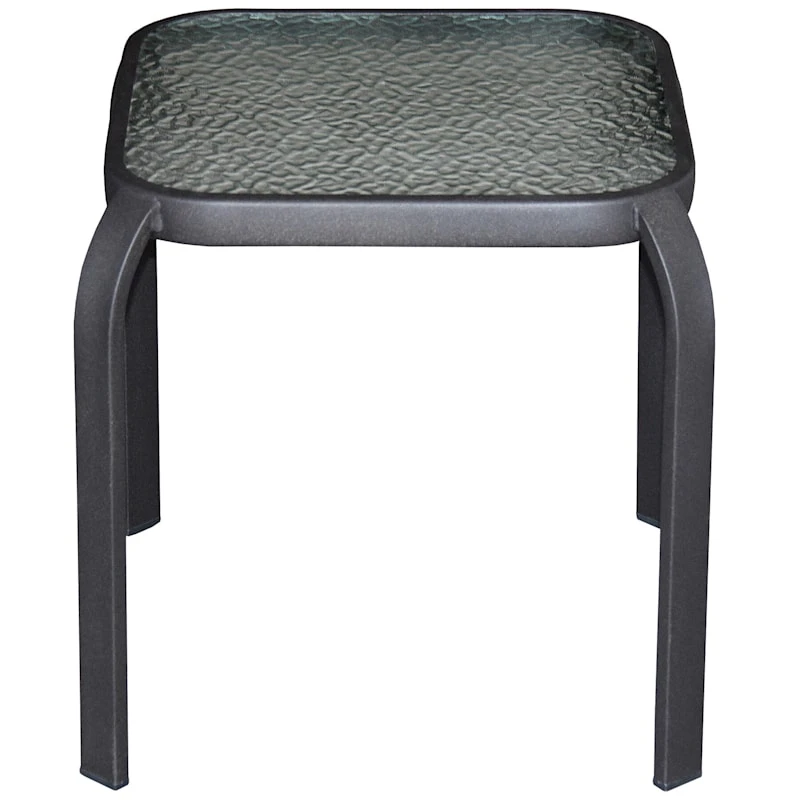 Streamlined with just a touch of retro, our brown steel outdoor patio end table exudes simple contemporary design. Crafted of painted metal with a tempered glass top, this side table strikes a clean-lined square silhouette on four straight legs. This table will provide a perfect platform for drinks and nibbles at your next backyard bash.