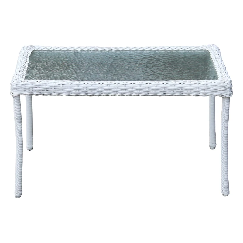 A wonderful wicker table can serve as an outdoor side table, sofa table… whatever you choose. Our white synthetic wicker coffee table is supported by a sturdy metal frame and features a tempered glass top. All-weather wicker is waterproof and withstands the sun without fading.