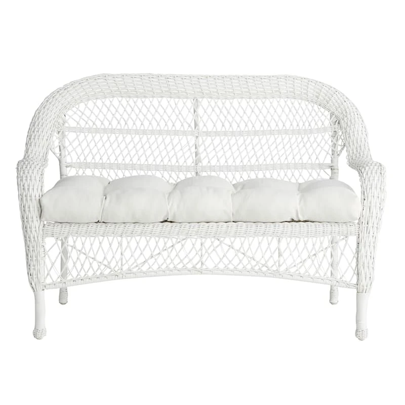 Our outdoor cushions are durable and ready to stand up to the elements. Polyester construction and all-weather capability make this Tristin Heather White Outdoor Wicker Settee Cushion a must-have for outdoor entertaining. Create a stunning patio, porch or deck that will be the talk of the neighborhood. Check our overall selection for a variety of shapes, sizes, patterns and colors to fit the personality of your patio.
