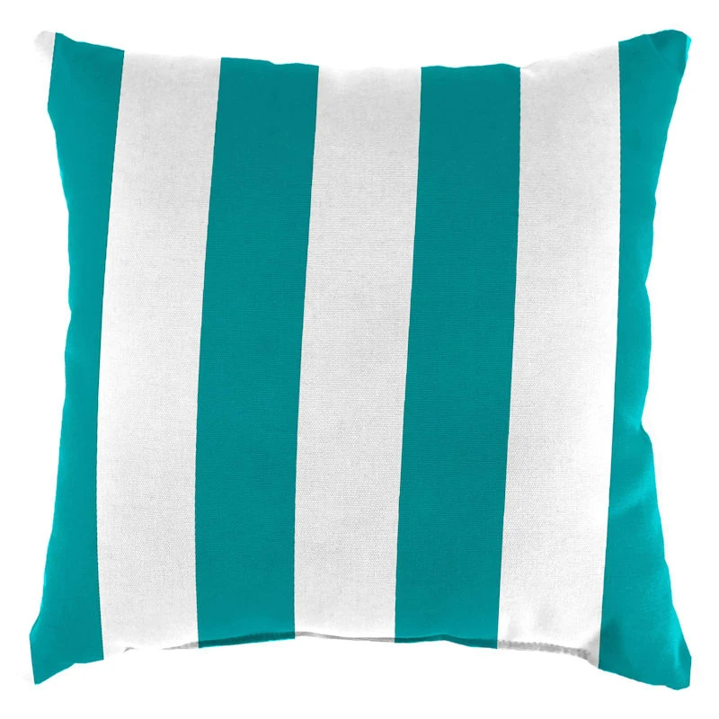 Our outdoor pillows are durable and ready to stand up to the elements. Polyester construction and all-weather capability make this 20in turquoise awning striped oversized outdoor throw pillow is a must-have for outdoor entertaining. With the fashion-forward color, you can create a stunning patio, porch or deck that will be the talk of the neighborhood. Check our overall selection for a variety of shapes, sizes, patterns and colors to fit the personality of your patio.