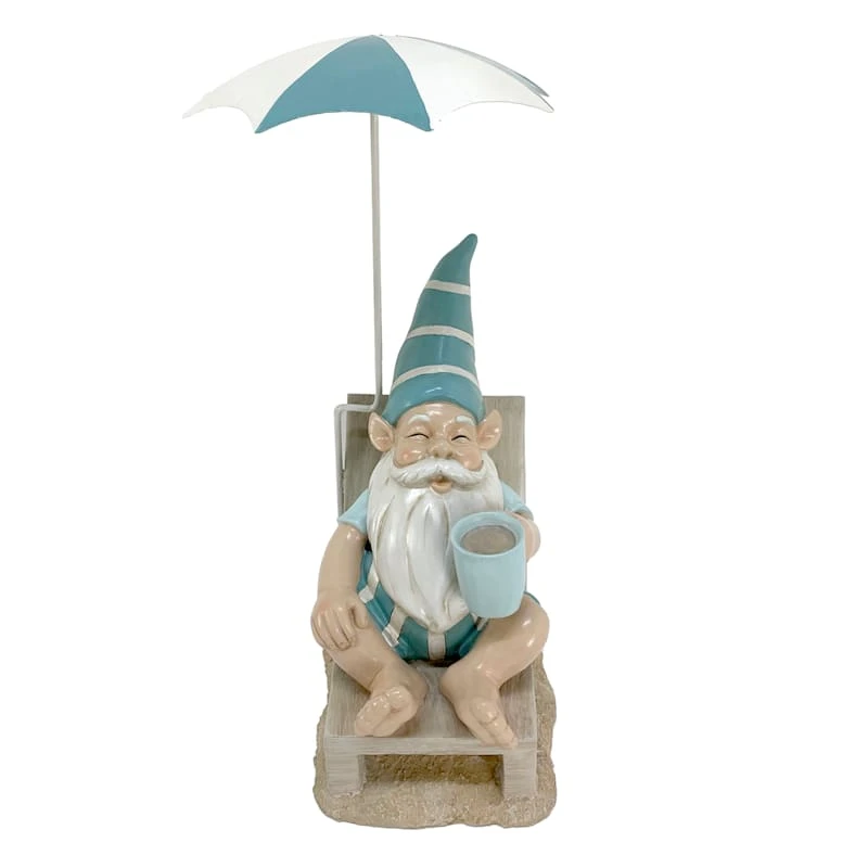 A jack of all trades, including graphic designer, carpenter, contractor, author and beloved reality TV host, Ty Pennington has curated a new and exclusive collection for At Home. Wow your family and friends with our charming blue and white resin gnome with umbrella and beach chair. He looks like he came straight out of a children�s fairytale! The colorful detailing of this resin figurine draws you in, and it�ll be a welcome addition to your prolific garden for years to come.