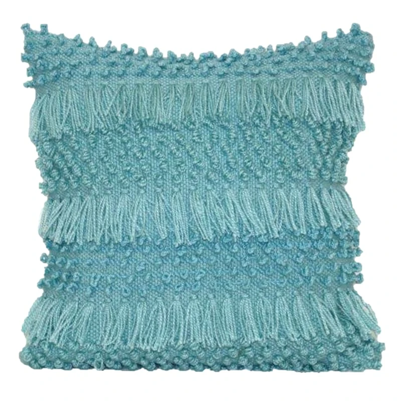 A jack of all trades, including graphic designer, carpenter, contractor, author and beloved reality TV host, Ty Pennington has curated a new and exclusive collection for At Home. Featuring a global-inspired design, our icy morning knotted rug pillow is brimming with loads of exotic charm. The pale blue fabric boasts a knotted motif with eclectic alternating color fringe detail. A unique throw pillow like this helps you create an instant refresh with ease.