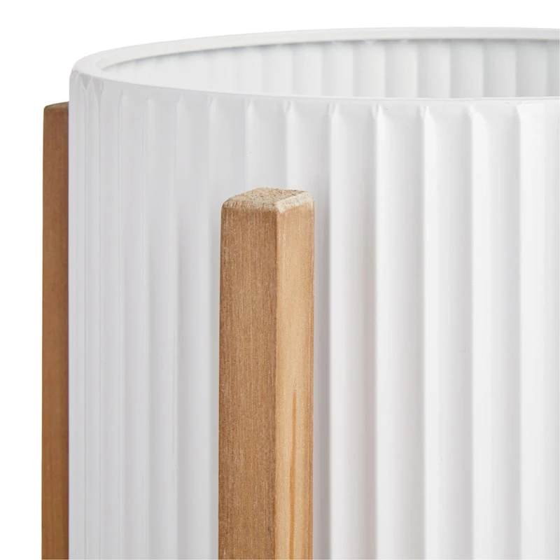 A jack of all trades, including graphic designer, carpenter, contractor, author and beloved reality TV host, Ty Pennington has curated a new and exclusive collection for At Home. Highlight your green thumb and showcase your annuals and perennials at your front door or add a touch of festive foliage to your deck with our stylish 21in. white ribbed metal and a natural wood stand. More than just a spot to display your gardening skills, this refreshing pot has a contemporary coastal appearance with its wonderful elevated design. Created to live indoors or covered outdoors, it’s ready to make your plants pop.
