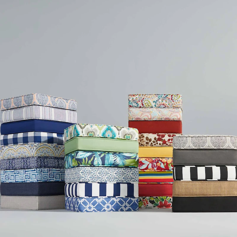 Our outdoor cushions are durable and ready to stand up to the elements. Polyester construction and all-weather capability make our Wheaton navy deep seat cushion a must-have for outdoor entertaining. With the fashion-forward design, you can create a stunning patio, porch or deck that will be the talk of the neighborhood. Check our overall selection for a variety of shapes, sizes, patterns and colors to fit the personality of your patio.