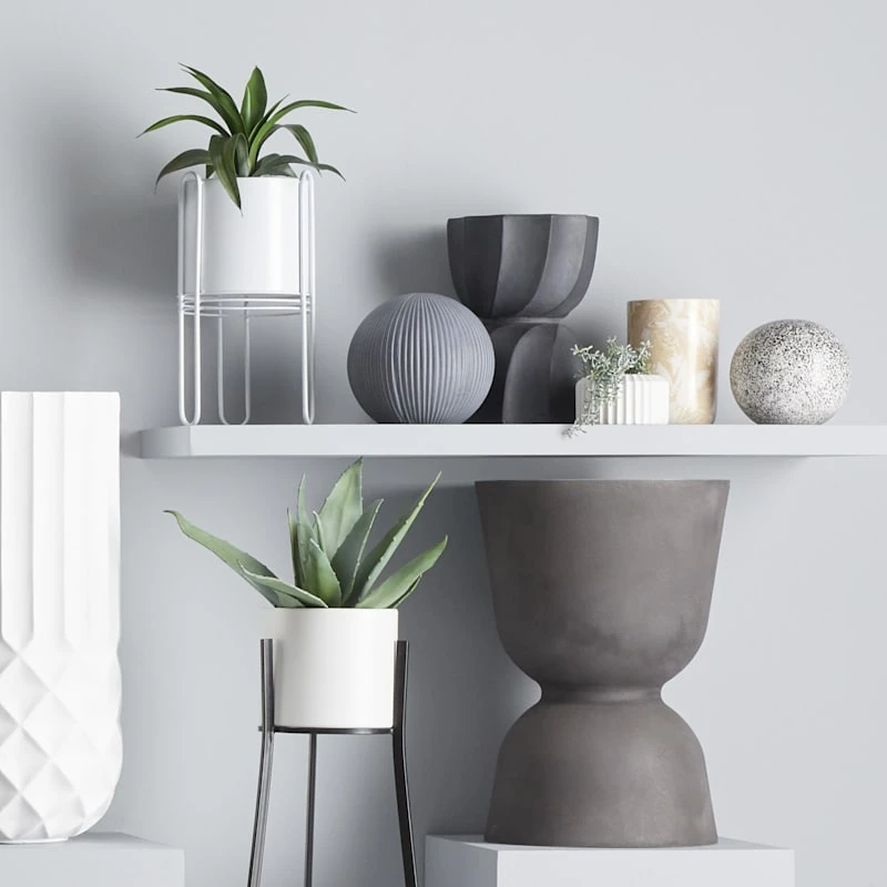 Even if your living room is short on square footage, you can still provide a spot for beloved house plants. Our versatile modern black plant stand is a handy helper. It features a sturdy metal base and a white ceramic pot that adds amazing personality.
