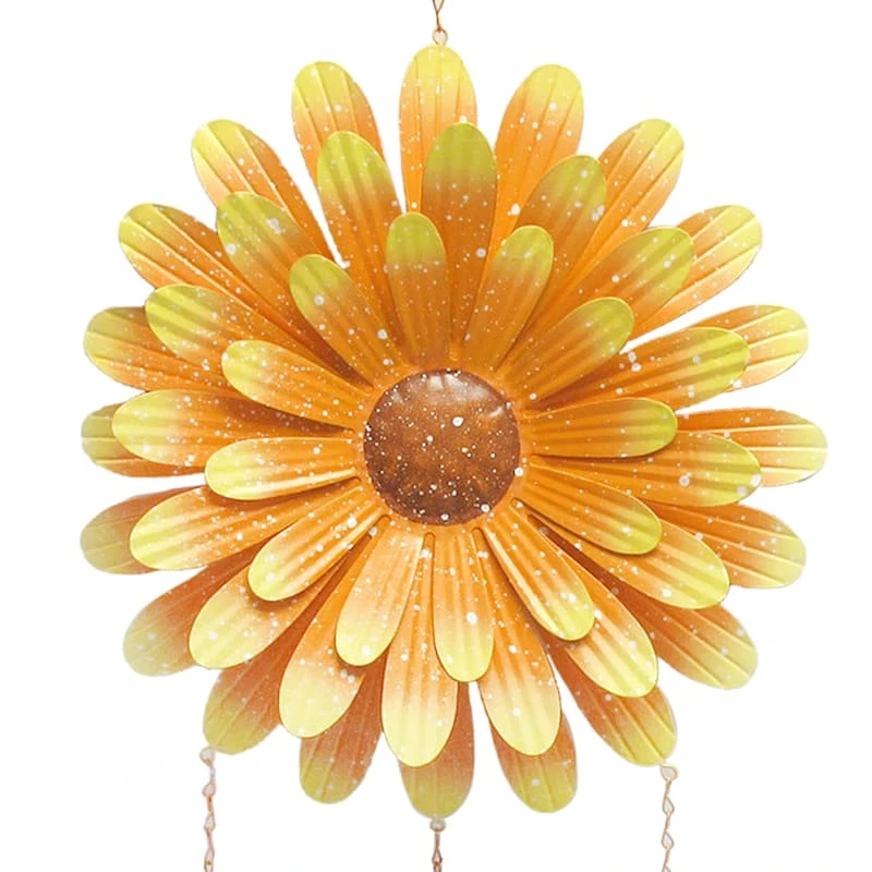 A vibrant yellow floral design adorns our metal and glass bead suncatcher wind chime, which creates a bright and impressive indoor or outdoor display. Suncatchers are symbolic of serenity and tranquility and are also thought to bring a calm to any area where they’re hung. The perfect gift for the flower lover.