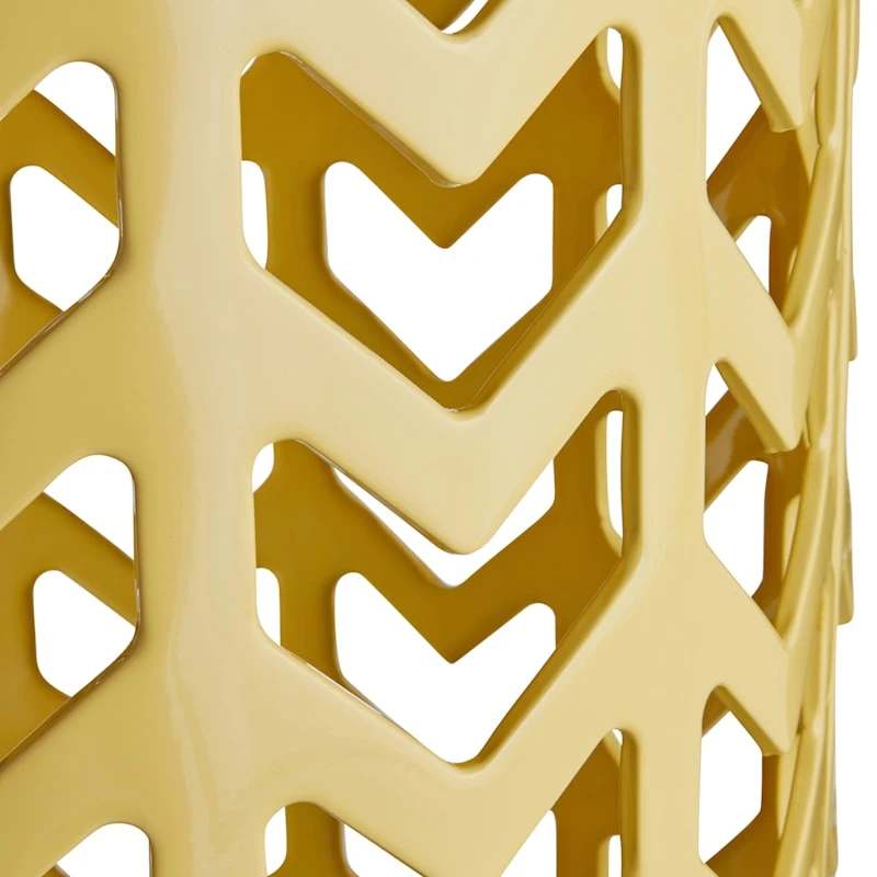 Give your plants a fun spot to hang out with our square yellow metal chevron plant stand. Featuring a cool cylindrical design, this piece will be right at home inside or out. Whether setting up a garden room, or simply looking to save a plant from the chilly outdoors, this stand is a great option for ornamenting your home.