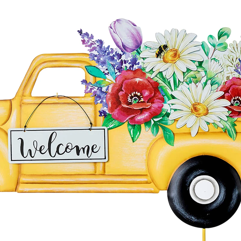 Add a pinch of fun to your garden with our colorful metal 24in. yellow multi “Welcome” retro truck with florals outdoor garden stake. Created with love, this detailed metal piece features a dual pointed base with a colorful design. Everyone will enjoy the charming subject matter tucked into your prolific garden. Made of rust-resistant metal, this garden stake is designed to bring a natural touch to your landscaping.